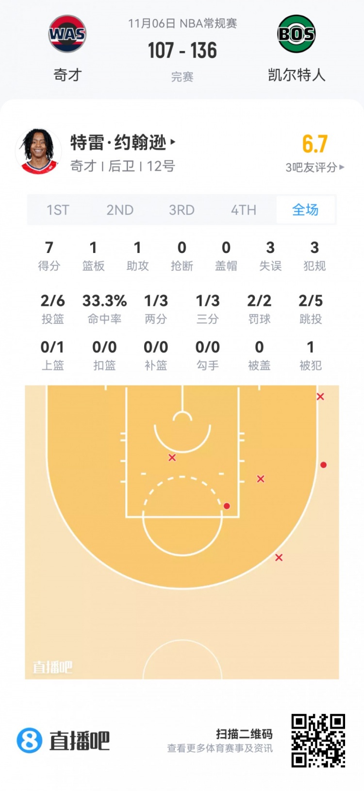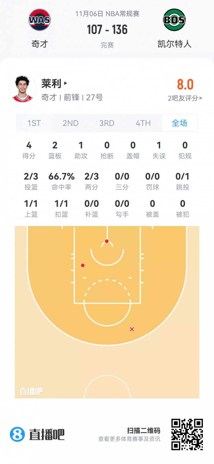 Will Riley, lượt chọn số 21 trong lượt chọn đầu tiên của Wizards, đã chơi trong 12 phút