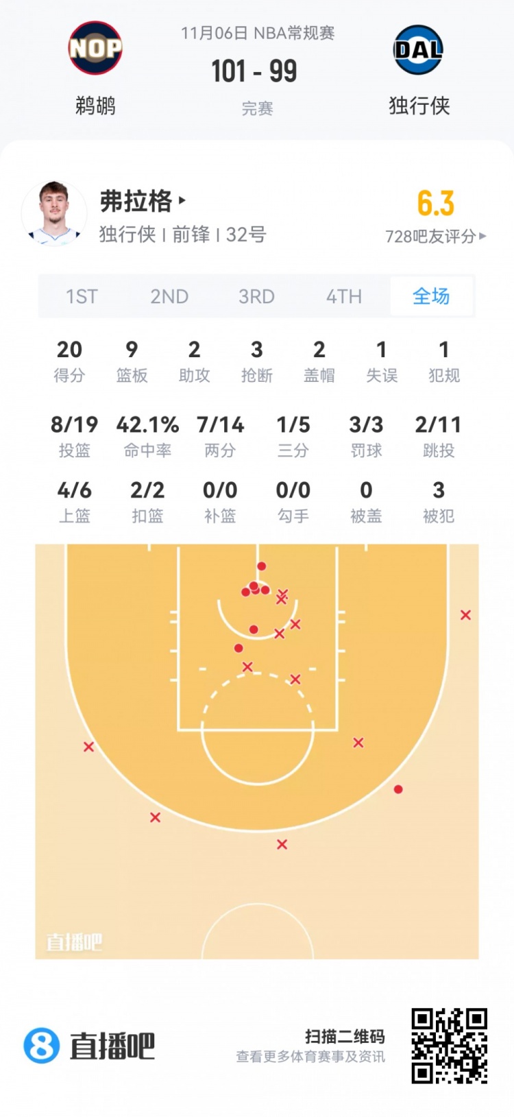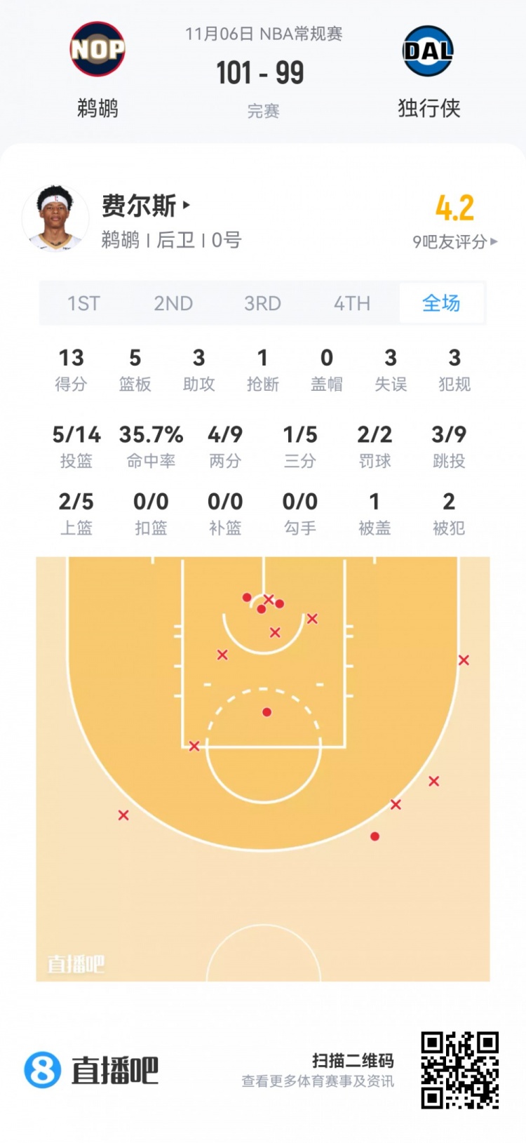 Cooper Flagg, tuyển thủ số 1 của Mavericks, đã thi đấu trong 35 phút 2 giây.