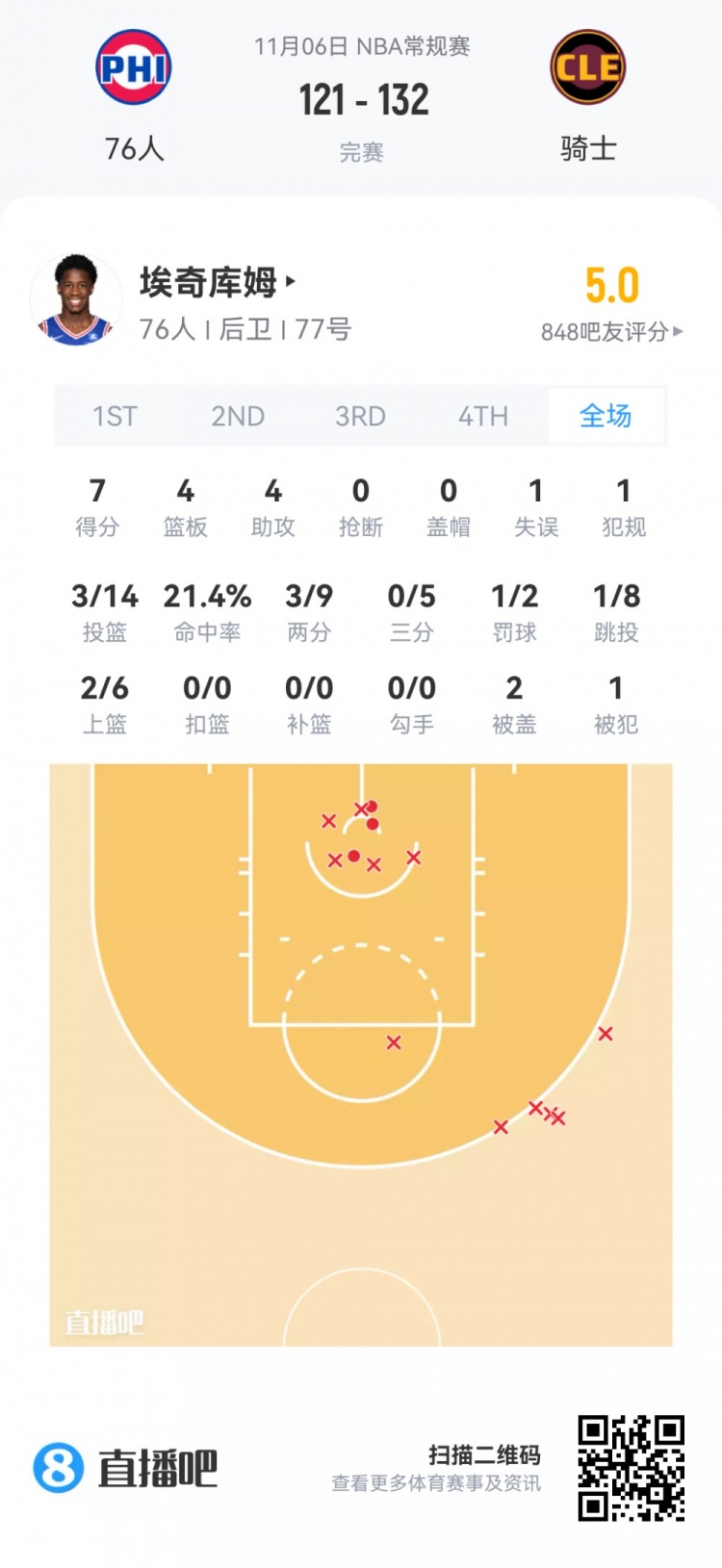 Hunter Sallis chưa được cải tiến của 76ers Xuất hiện trong 1 phút 6 giây
