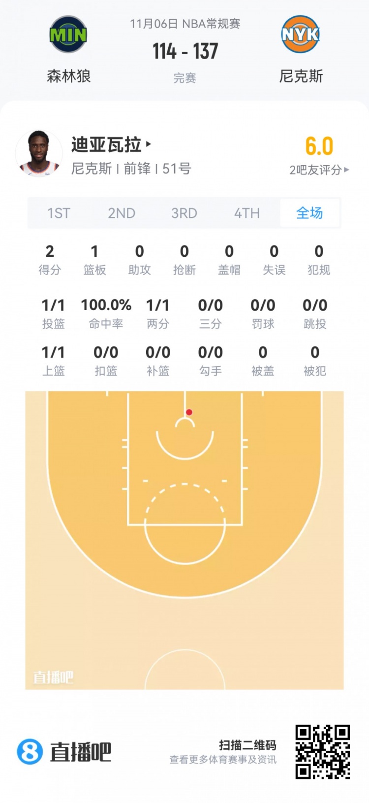 Lựa chọn số 51 của Knicks ở vòng hai, Mohamed Diawara. Xuất hiện trong 2 phút 26 giây.