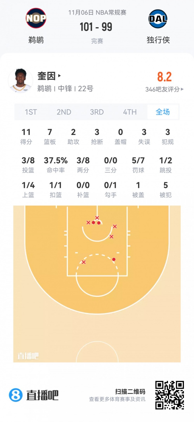 Derrick Quinn, tuyển thủ số 13 của Pelicans ở vòng đầu tiên, thi đấu trong 25 phút 52 giây