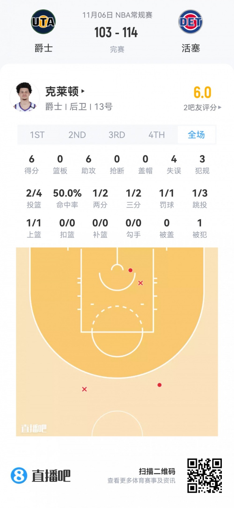 Walter Clayton Jr., lượt chọn thứ 18 ở vòng đầu tiên của giải Jazz, chơi trong 15 phút 12 giây