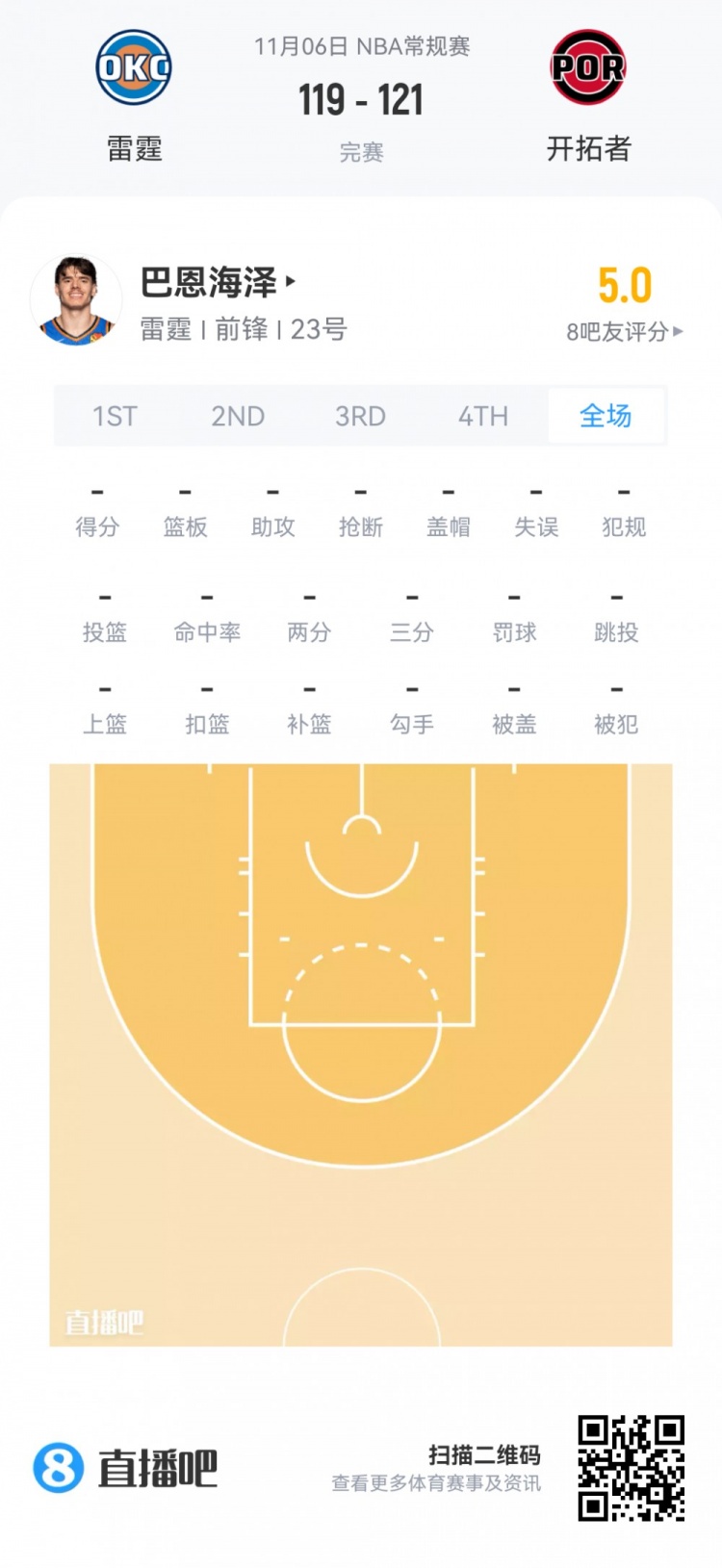Thunder ở lượt chọn thứ hai Số 44 Brooks Barnheiser Xuất hiện trong 1 phút 31 giây