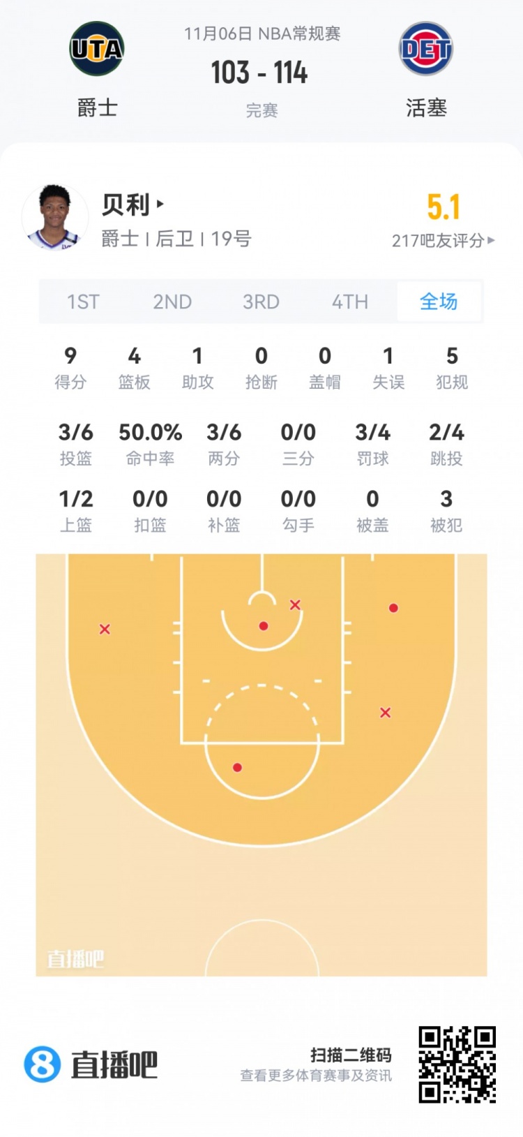 76ers lượt chọn thứ hai số 35 Jonny Bloom Đã chơi cho 1 phút 6 giây