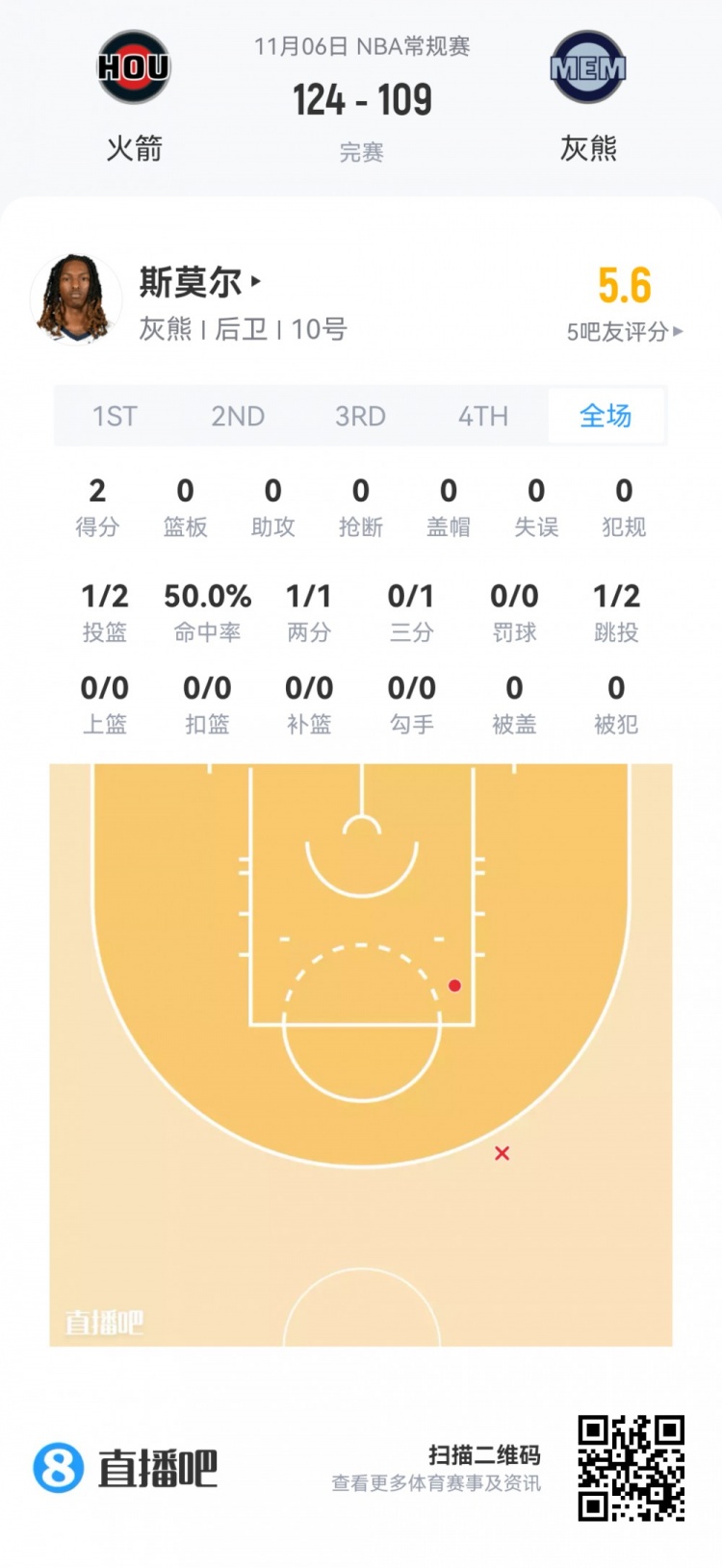 Javon Small, lượt chọn số 48 ở vòng thứ hai của Grizzlies Xuất hiện trong 1 phút 59 giây