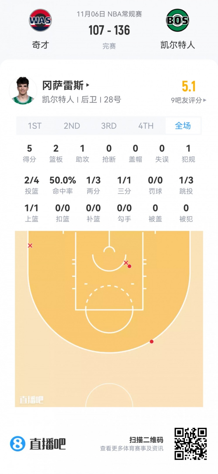 Ugo Gonzalez Pena, lượt chọn thứ 28 ở vòng đầu tiên của Celtics Chơi trong 16 phút 39 giây