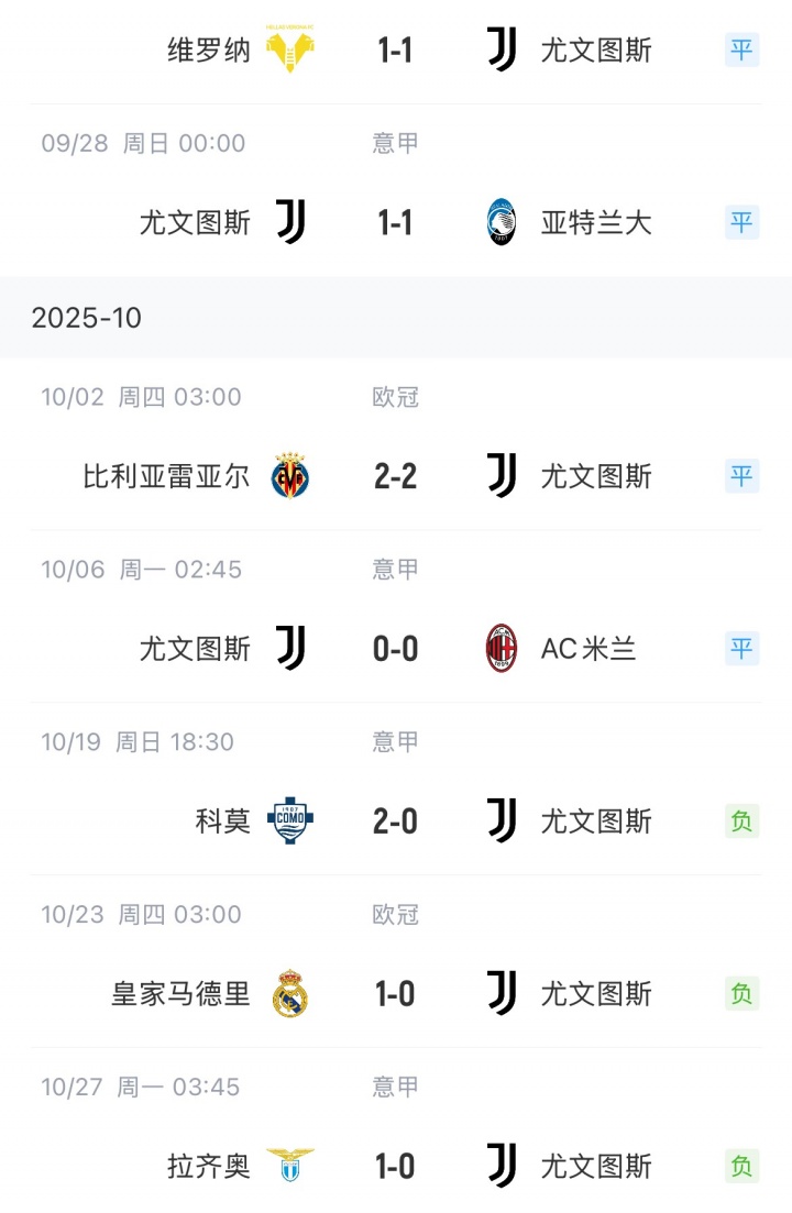 Juventus đã không thắng 8 trận trên mọi đấu trường và không ghi bàn trong 4 trận liên tiếp.