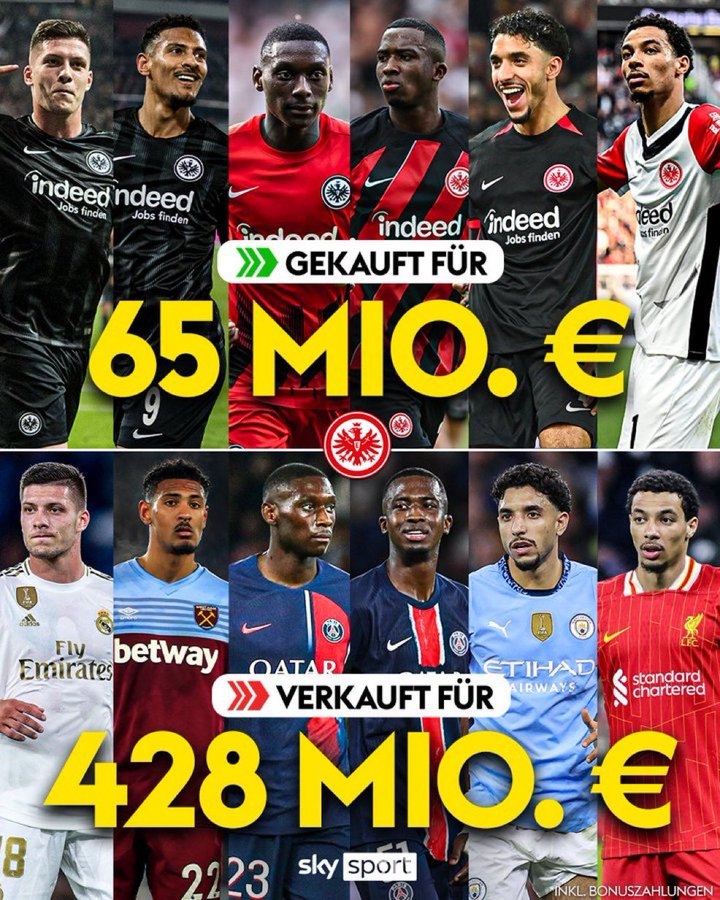 Frankfurt luôn có truyền thống về "các cửa hàng đen ở Bundesliga". Jovic, Allais, Muani, Pacho, Malmouche, Ekitic và những người khác đều được họ mua với giá thấp và sau đó bán với giá cao.