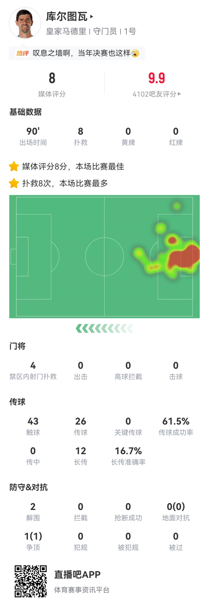 Sau trận đấu, cơ quan xếp hạng Sofascore đã công bố xếp hạng của hai thủ môn. Neuer ghi được 8,2 điểm và Courtois ghi được 8,0 điểm.