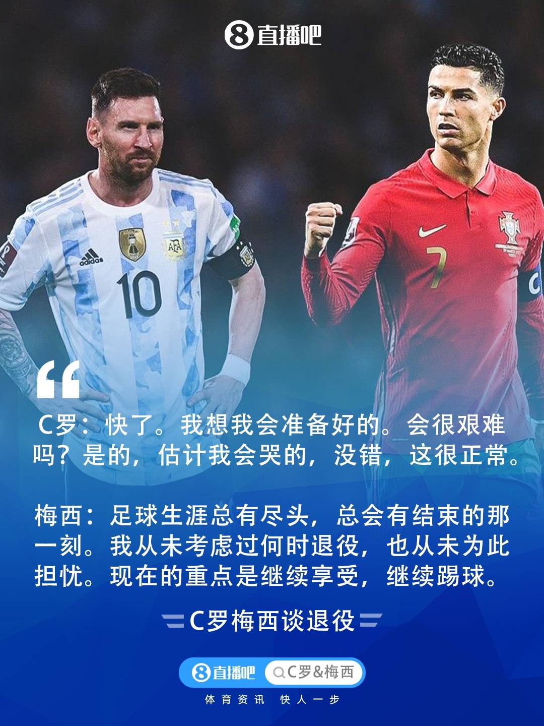 Gần đây, Cristiano Ronaldo 40 tuổi và Messi 38 tuổi đã liên tiếp được phỏng vấn và cả hai đều nói về chủ đề giải nghệ.