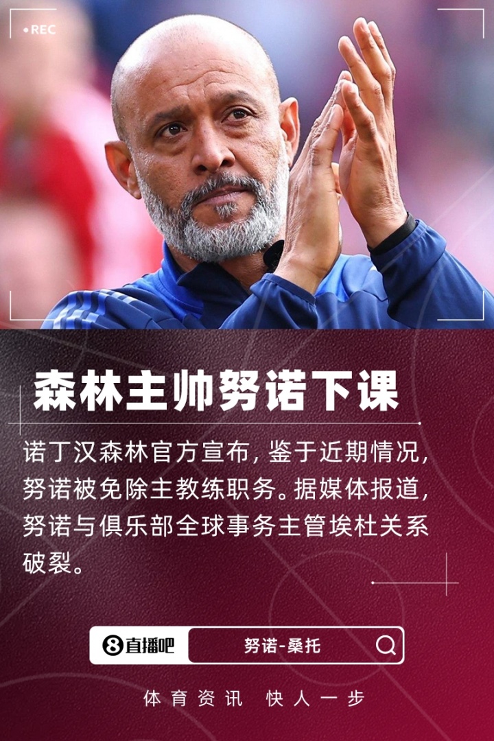Tin tức chính thức của Forest Forest, Huấn luyện viên Nuno đã bị bác bỏ! Trong mùa giải mới ở Premier League, Forests bắt đầu với 1 chiến thắng, 1 trận hòa và 1 trận thua, và tạm thời xếp thứ 10 với 4 điểm. Theo báo cáo truyền thông, mối quan hệ của Nuno với Edu, giám đốc các vấn đề toàn cầu của câu lạc bộ, đã bị phá vỡ.