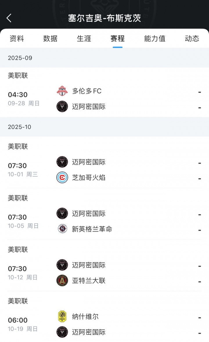 Busquets hiện đang chơi cho Miami International, nơi đội còn 5 trận trong mùa giải thường xuyên của UEFA League mùa này, và sẽ bảo vệ nhà vô địch mùa giải thường xuyên nếu họ thắng tất cả 5 trận. Ngoài ra, Miami International đã được xác nhận để tham gia vòng playoffs.